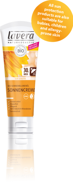 Sun Cream SPF 30 Betrouwbare bescherming voor de gevoelige huid 100% minerale UV-filters bieden een betrouwbare bescherming tegen de zon voor de gevoelige huid. De waterbestendige crème bevat hoogwaardig biologisch calendula extract en organische zonnebloemolie voor een intensieve verzorging van de huid. Ook geschikt voor de zon-gevoelige, tere huid van baby’s en kinderen. € 9,95